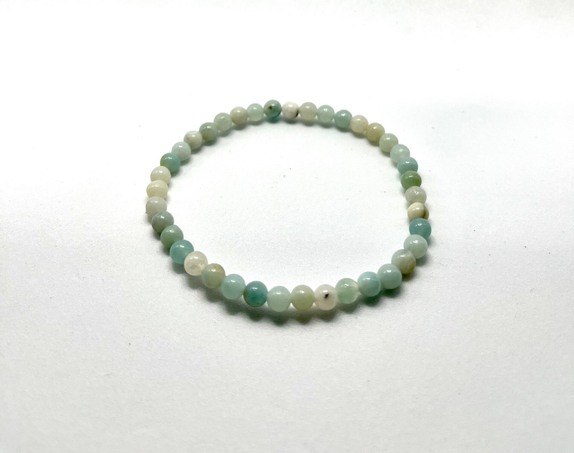 Mooi armbandje van Amazonietkralen 4 mm: Amazoniet brengt evenwicht en balans. Bevordert harmonie waardoor deze steen zeer geschikt is om te gebruiken bij het oplossen van conflicten. Brengt evenwicht bij stemmingswisselingen, verdriet en trauma.